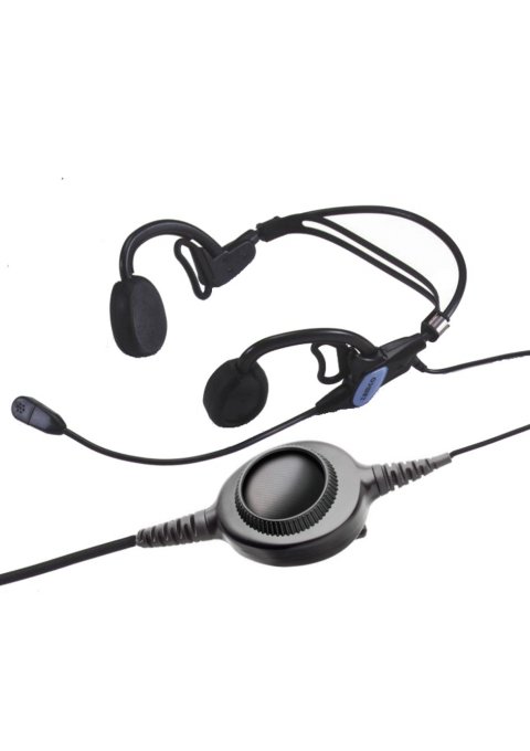 kształtu czaszki. Zestaw posiada mikrofon na pałąku, który ze względu na swoje parametry w sposób selektywny przekazuje ludzki głos. Umożliwia komunikację przy hałasie dochodzącym do 90 dB. Przewody zastosowane w zestawie są dodatkowo wzmocnione nicią kevlarową.Znajduje zastosowanie w Agencjach Ochrony, Policji, Wojsku, Straży Granicznej (nadaje się do założenia pod kaski i hełmy).